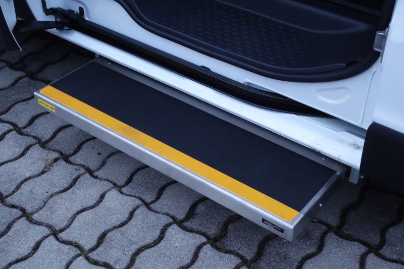 Diese elektrische Trittstufe wird unterhalb der Schiebetür montiert.